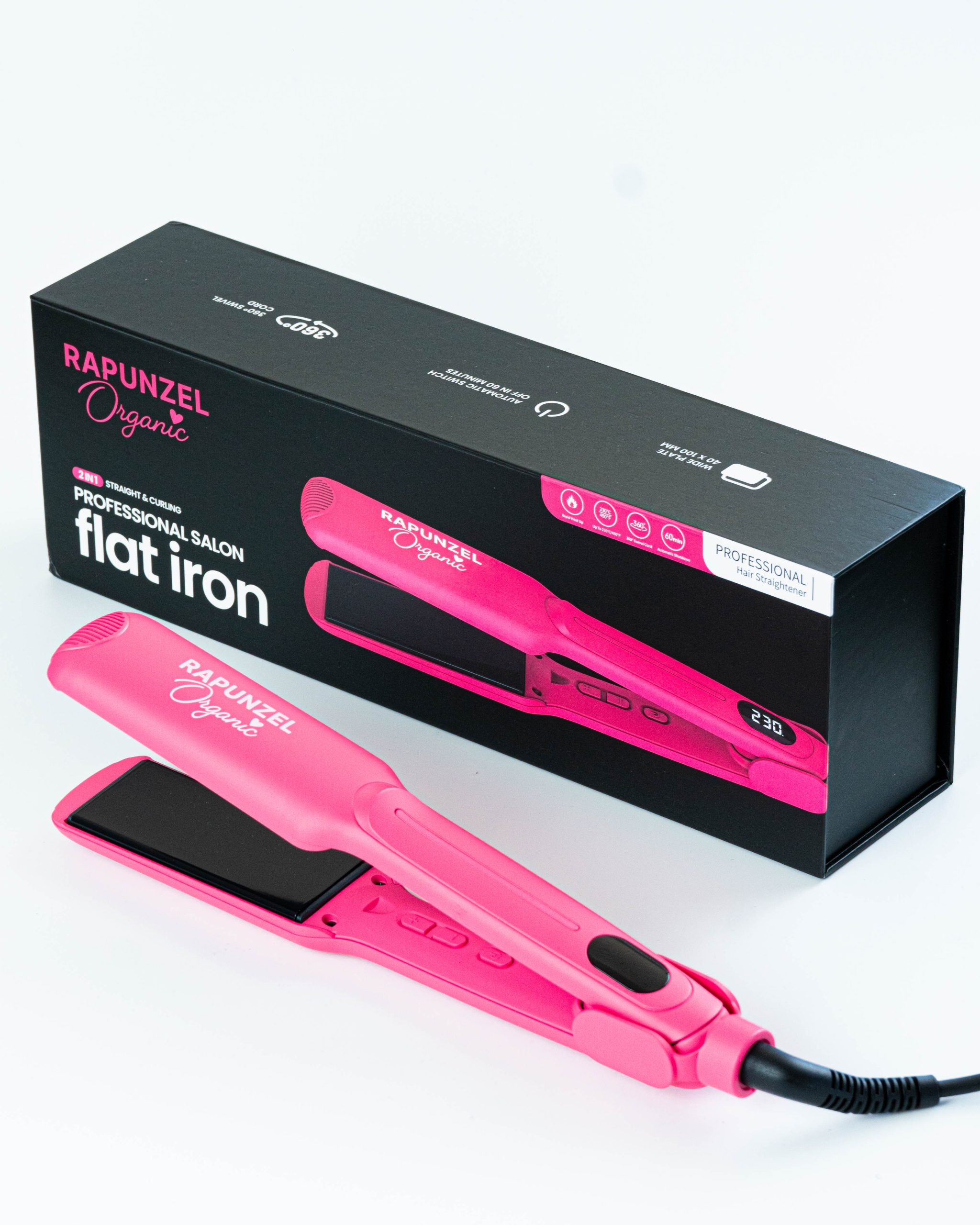 - Configuraciones de temperatura digital que van de 280°F a 450°F (135°C a 230°C) para versatilidad y conveniencia en el peinado.